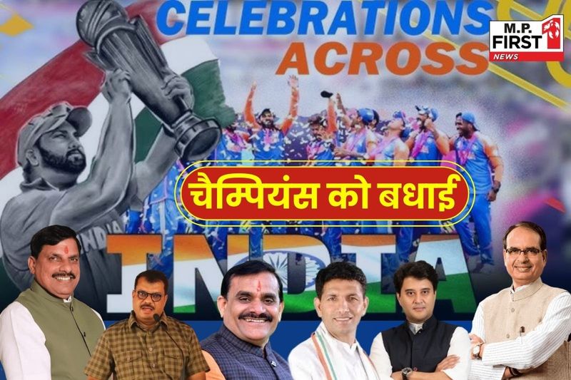 Congratulations Team India भोपाल: आईसीसी चैम्पियंस ट्रॉफी 2025 के फाइनल में टीम इंडिया ने न्यूज़ीलैंड को 4 विकेट से हराकर खिताब पर कब्जा जमा लिया। इस टूर्नामेंट में टीम इंडिया अजेय रही। इस ऐतिहासिक जीत (India Won Champions Trophy 2025) के साथ ही टीम इंडिया को जमकर बधाई मिल रही है। प्रधानमंत्री नरेंद्र मोदी के अलावा मध्य प्रदेश के सीएम मोहन यादव, केंद्रीय कृषि मंत्री शिवराज सिंह चौहान, केंद्रीय मंत्री ज्योतिरादित्य सिंधिया के अलावा बीजेपी और कांग्रेस के तमाम नेताओं ने भारतीय क्रिकेट टीम को बधाई दी है।