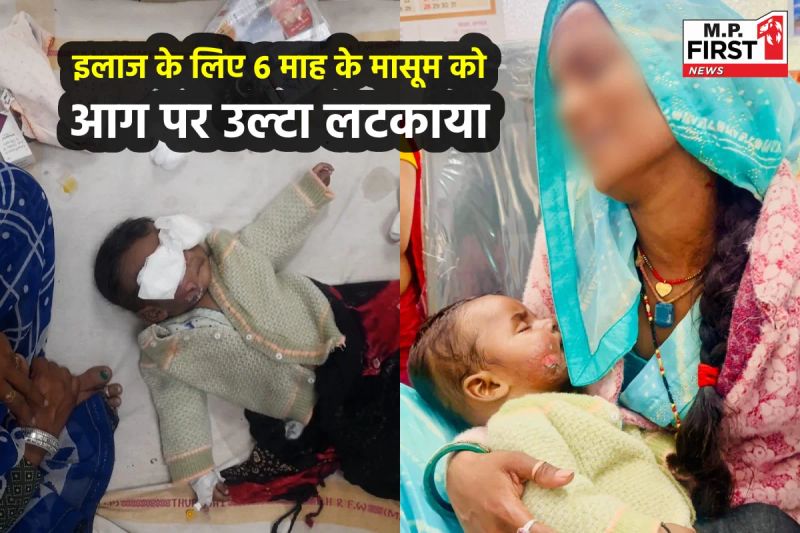 Shivpuri Crime News: शिवपुरी। शिवपुरी जिले के कोलारस थाना क्षेत्र के रामनगर गांव में अंधविश्वास और तांत्रिक क्रियाओं के नाम पर एक दिल दहला देने वाली घटना सामने आई है। गांव के कथित तांत्रिक रघुवीर धाकड़ ने झाड़-फूंक के नाम पर छह माह के मासूम बच्चे को आग के ऊपर उल्टा लटका दिया, जिससे उसका चेहरा बुरी तरह झुलस गया और उसकी दोनों आंखों की रोशनी जाने का खतरा मंडरा रहा है।