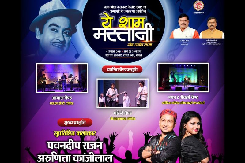 Bhopal News: मध्य प्रदेश शासन, संस्कृति विभाग (Madhya Pradesh Government Culture Department) द्वारा प्रतिवर्ष की भांति इस वर्ष भी हरफनमौला कलाकार किशोर कुमार (Kishore Kumar) के जन्म दिवस के अवसर पर 4 अगस्त, 2024 को 'ये शाम मस्तानी' कार्यक्रम का आयोजन होगा। संचालक संस्कृति एन.पी. नामदेव ने बताया कि महान गायक किशोर कुमार को स्वरांजलि देने के उद्येश्य से यह आयोजन किया जा रहा है। आइए इस खबर के बारे में और अधिक जानते हैं।