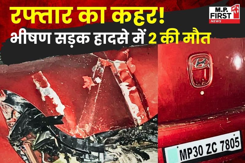 bhind road accident  भिंड में भीषण सड़क हादसा  तेज रफ्तार के कार ने ली 2 की जान  जिंदगी और मौत से जंग लड़ रहे 4 लोग