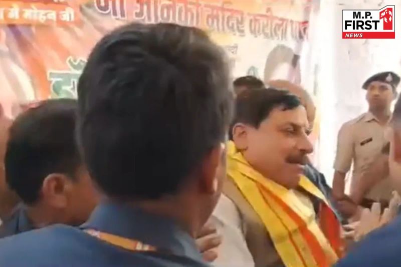 CM Mohan Yadav Visit: अशोकनगर। मध्य प्रदेश के अशोकनगर जिले में लगने वाले माता जानकी करीला धाम पर मेला में शामिल होने के लिए मध्य प्रदेश के मुख्यमंत्री डॉ. मोहन यादव आज अशोकनगर के दौरे पर हैं। उनके इस दौरे पर सुरक्षा व्यवस्था में एक बड़ी चूक सामने आई है जिसके चलते बड़ी दुर्घटना होते-होते रह गई। दरअसल जब वह पुष्पवर्षा कर सीढ़ियों से उतर रहे थे, उसी समय उनके लिए बनाया गया स्टैंडिंग बेस कमजोर होने की वजह से टूट गया। गनीमत रही कि समय रहते मुख्यमंत्री ने खुद को संभाल लिया और उनके सुरक्षाकर्मियों ने उनका सहयोग दिया जिससे वे चोटिल होने से बच गए।