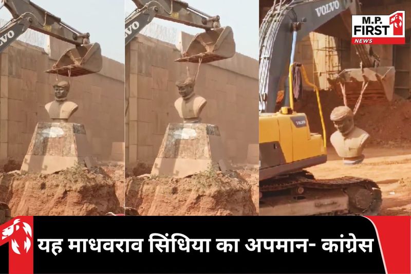 Madhav Rao Scindia Statue: गले में रस्सी बांधकर जेसीबी से माधवराव सिंधिया की मूर्ति को हटाया, कांग्रेस ने जताया विरोध