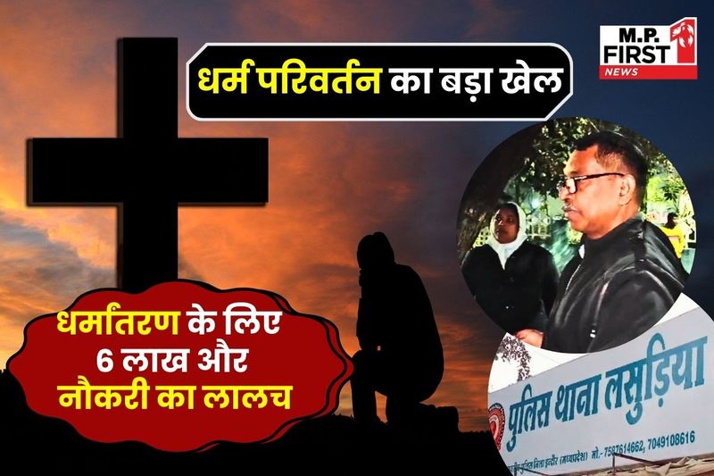 Indore Religious conversion इंदौर: मध्य प्रदेश के इंदौर में धर्म परिवर्तन कराने की साजिश का खुलासा हुआ है। इंदौर के लसुड़िया थाना क्षेत्र में एक धर्मांतरण का गंभीर मामला (6 Lakh Rupees and Job Offer For Conversion) सामने आया है। पूरे मामले की जानकारी जैसे ही हिंदू जागरण मंच सहित अन्य हिंदू संगठनों को लगी तो उन्होंने पुलिस को शिकायत की। पुलिस ने भी प्रारंभिक तौर पर मामला दर्ज कर जांच पड़ताल शुरू कर दी है।