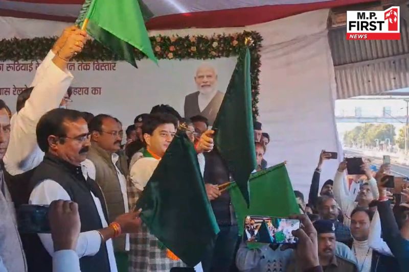 Jyotiraditya Scindia Flags Memu Train: सिंधिया ने मेमू ट्रेन को दिखाई हरी झंडी, कार्यकर्ताओं का किया सम्मान