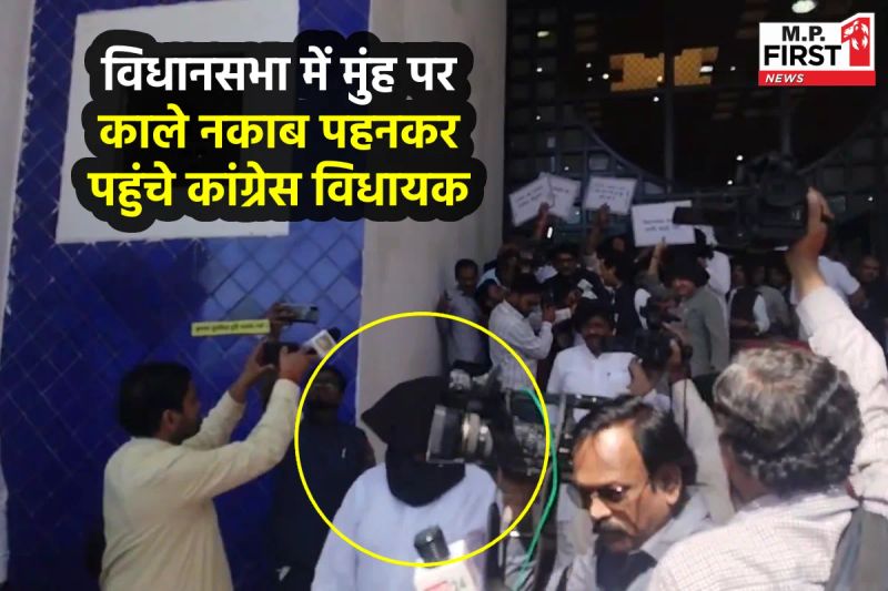 MP Budget Session: मुंह पर काले नकाब पहनकर पहुंचे कांग्रेस विधायक