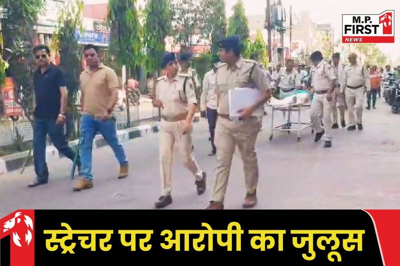 स्ट्रेचर पर पुलिस ने निकाला जुलूस