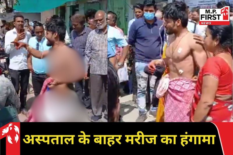 ratlam news  नाक और यूरिन में नली लगे मरीज ने अस्पताल के बाहर किया हंगामा  जानें पूरा मामला