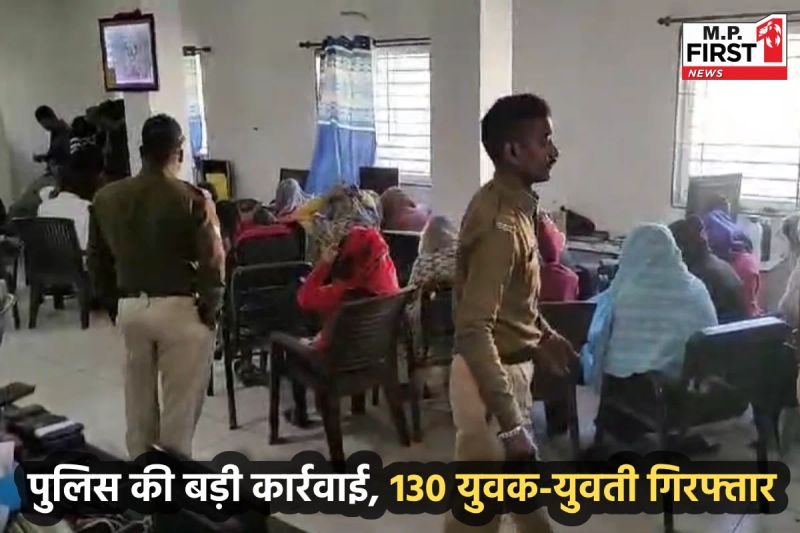ujjain local news  उज्जैन पुलिस की बड़ी कार्रवाई  130 युवक युवती गिरफ्तार  350 मोबाइल कंप्यूटर जब्त